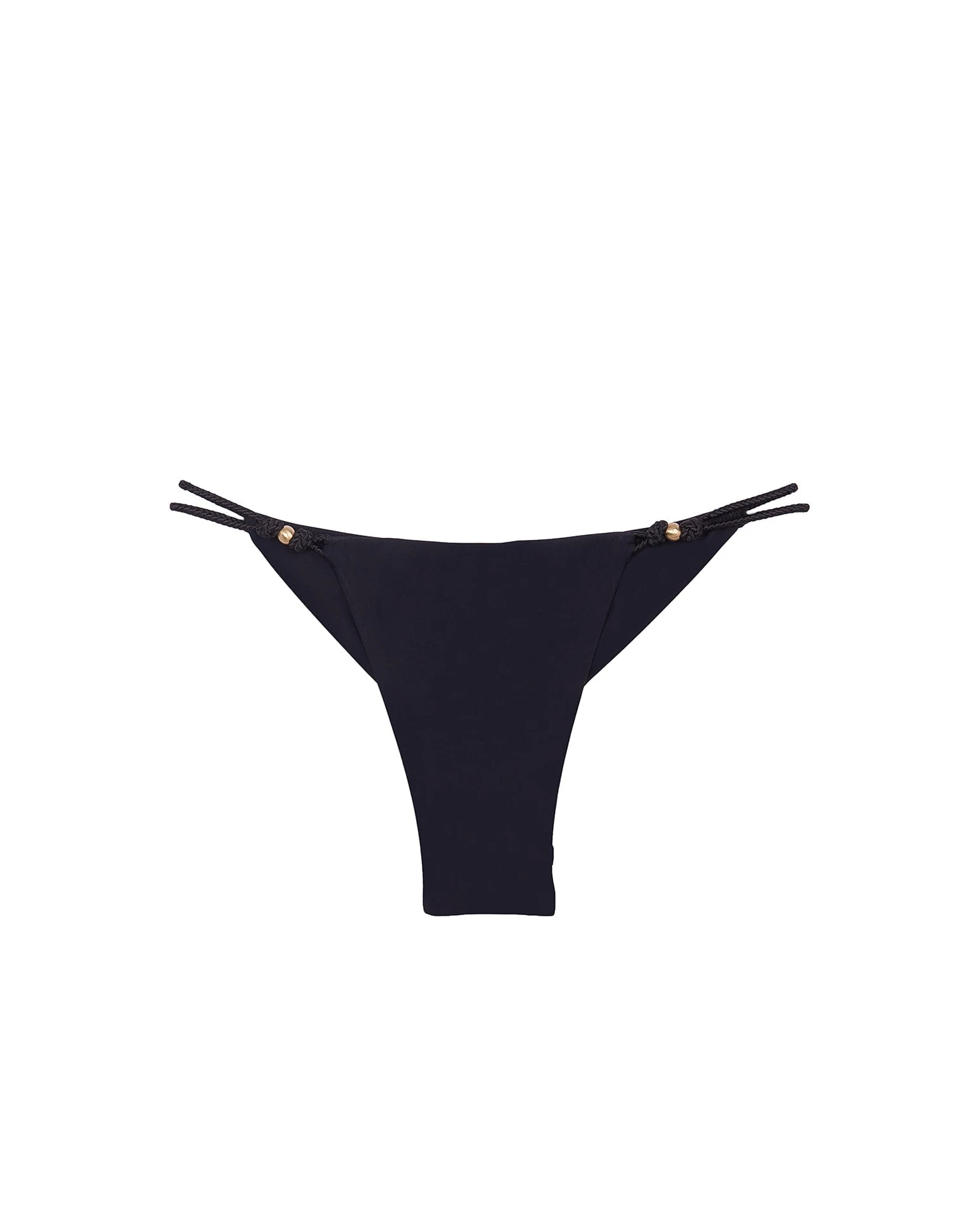 Traditional yet alluring bikini bottom with hand – crafted knotted cord and 24K gold-plated bead detailing. Available in Cheeky for a sultry look or full for a more classic fit.