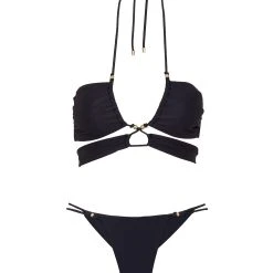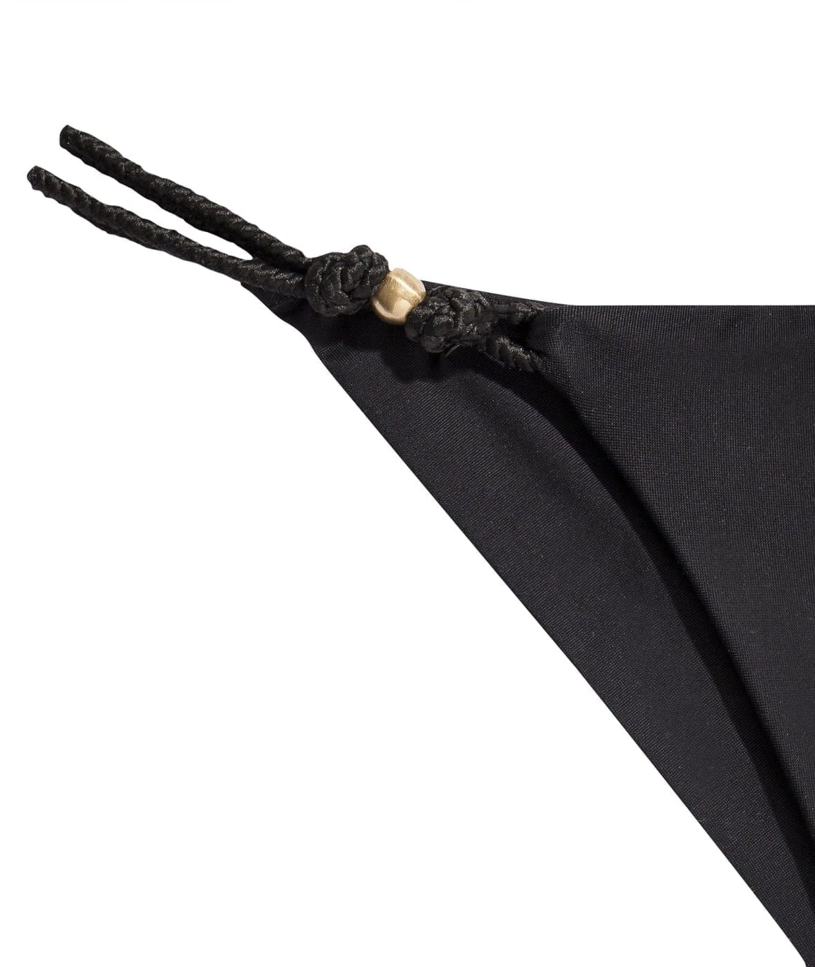 Traditional yet alluring bikini bottom with hand – crafted knotted cord and 24K gold-plated bead detailing. Available in Cheeky for a sultry look or full for a more classic fit.