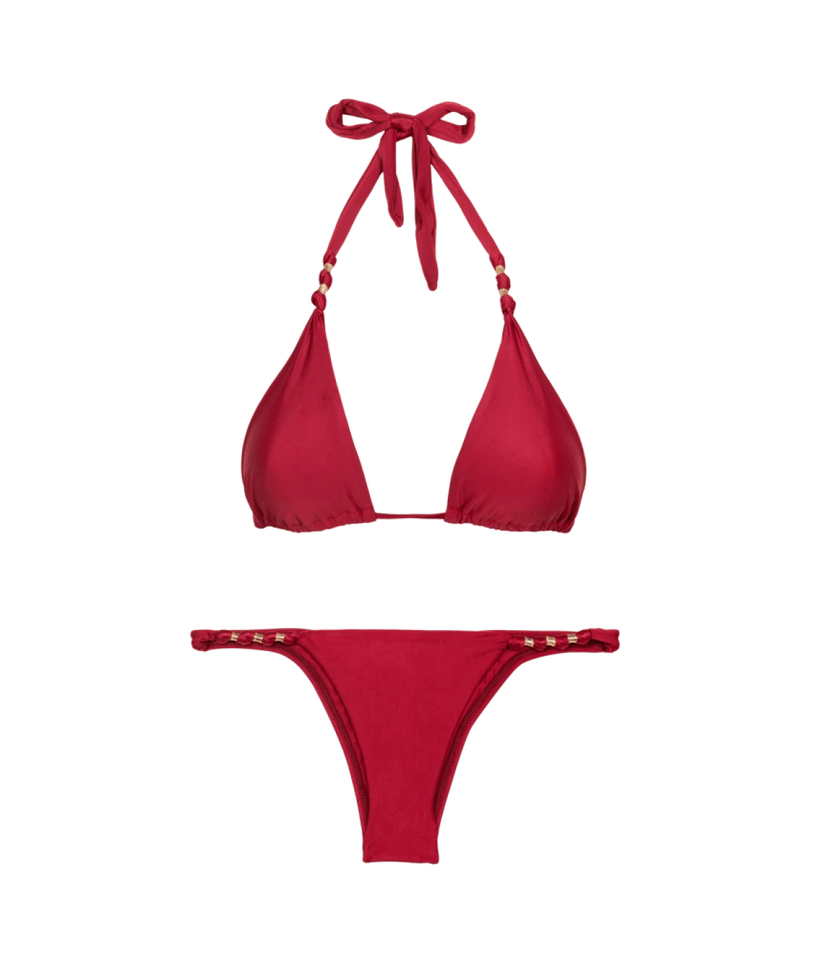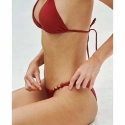 - Knot and bead details at hips