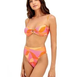 High waisted bikini bottom that provides medium coverage with a high leg on an exclusive opaque crepe texture fabric.
