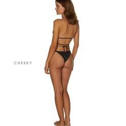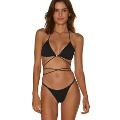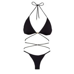 Classic underwear bikini bottom in a pale blue exclusive crepe fabric. This bottom molds to your body for a low rise eye- catching fit, wear at your natural waistline or higher on the hip for a high leg fit. This piece includes subtle 24K gold plated ring detailing on each side, a well as the ViX logo in back.