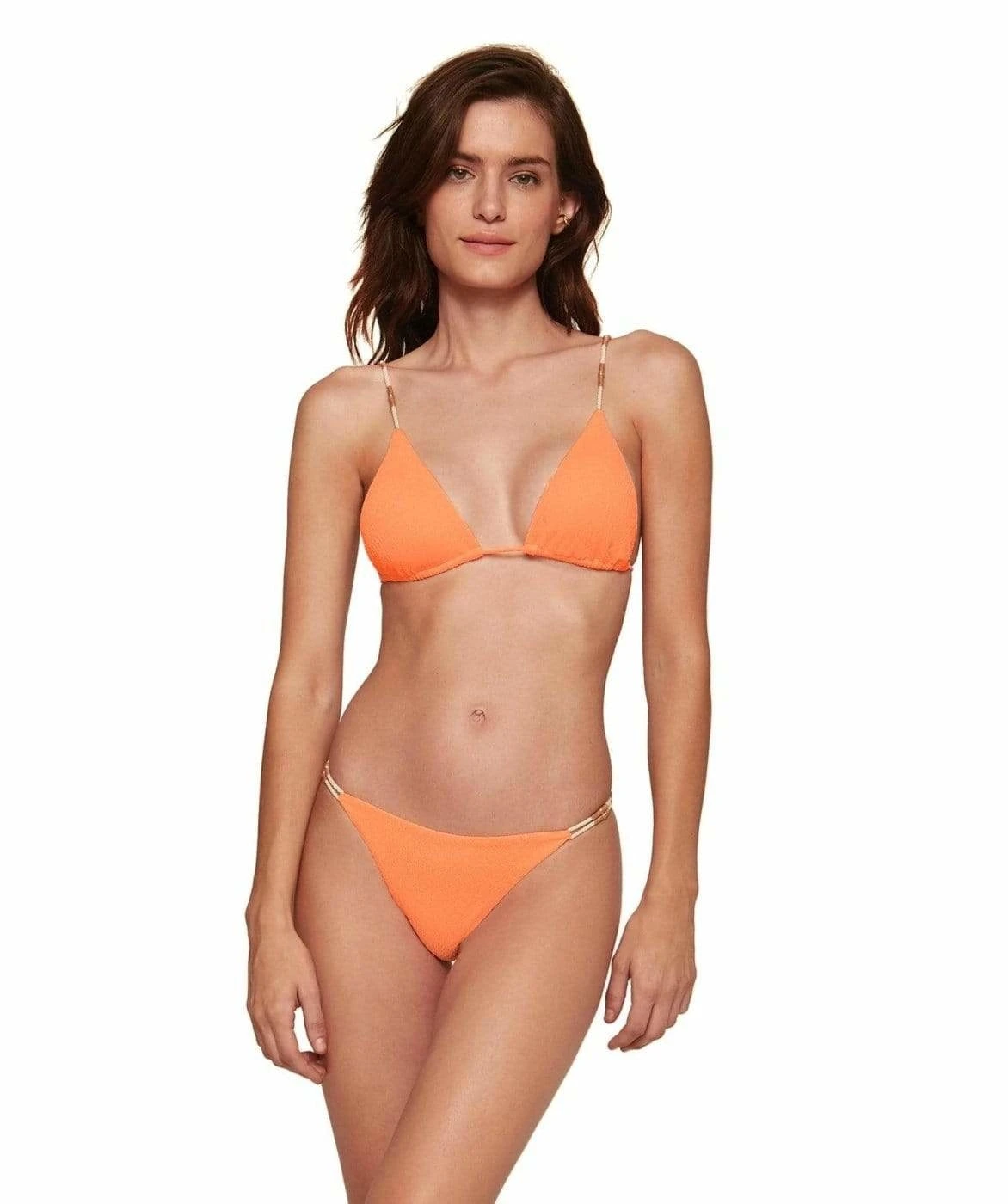 This Triangle style has a tie back and classic parallel straps for maximum adjustability so you can find the perfect fit. The Laura style also includes beaded strap accents and exclusive opaque crepe texture adding linen and cotton features to it.