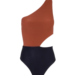 One-shoulder wide-strap swimsuit with draped detail and opening on the left side at the waist. Standout without showing too much; this is a must to take on your next tropical vacay.