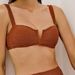 High waisted bikini bottom that provides medium coverage with a high leg on an exclusive opaque crepe texture fabric.
