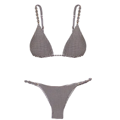 This triangle top is going to set you apart from the rest! With its hand-crafted fabric beading and gold accents you will be the talk of the pool.
