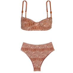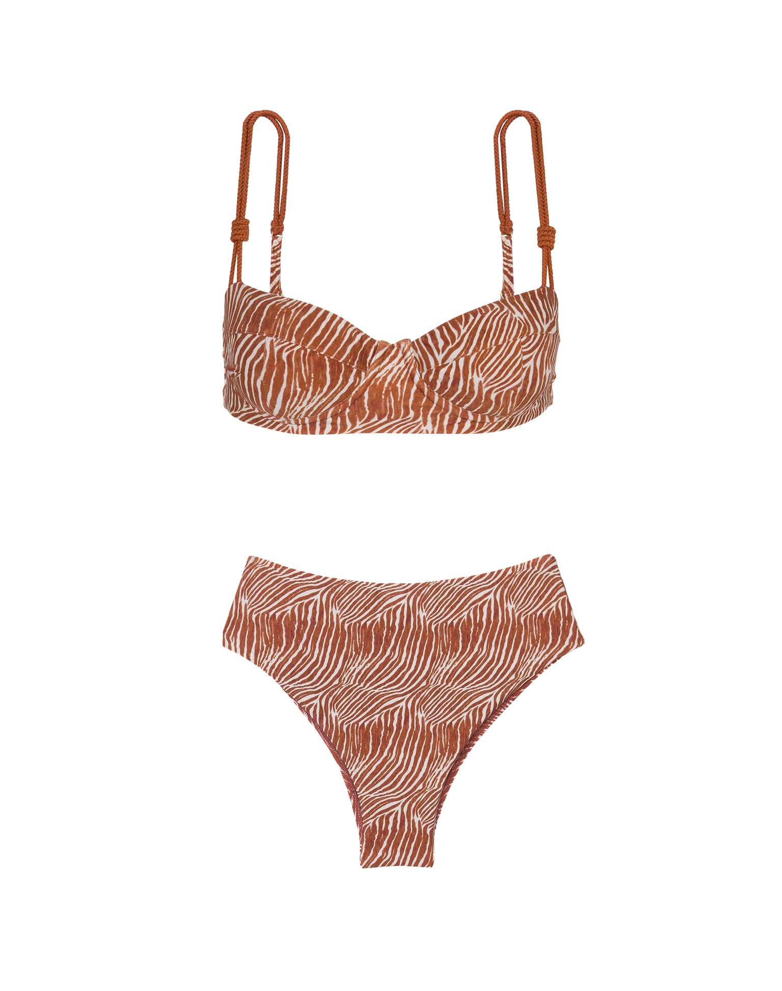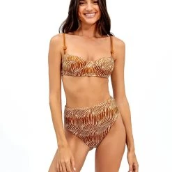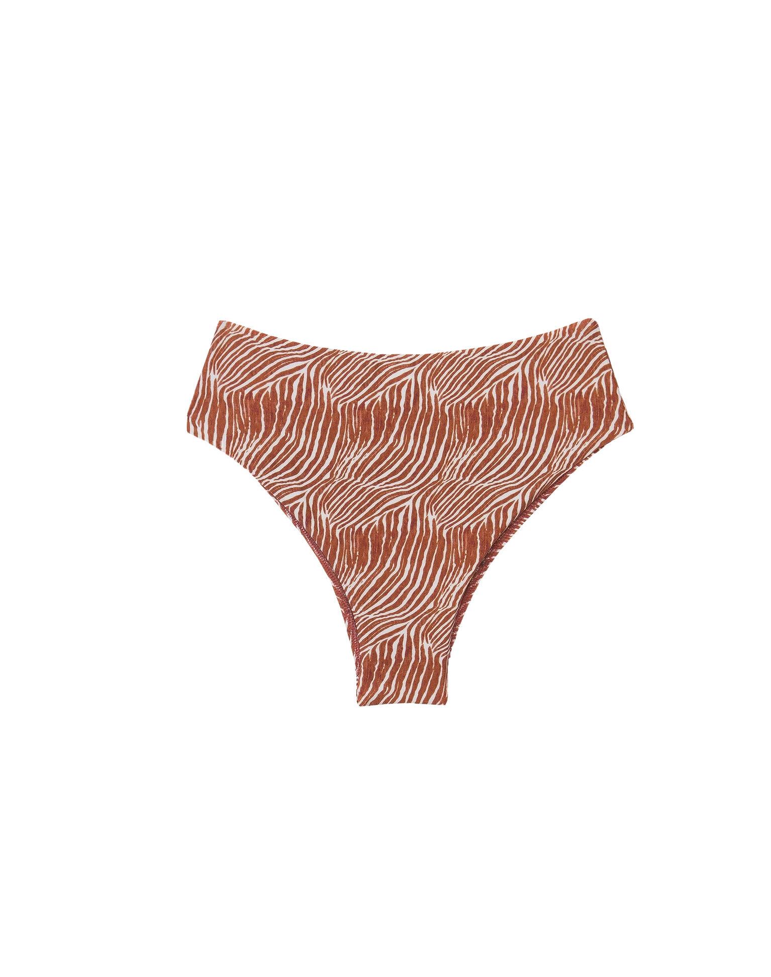 High waisted bikini bottom that provides medium coverage with a high leg on an exclusive opaque crepe texture fabric.