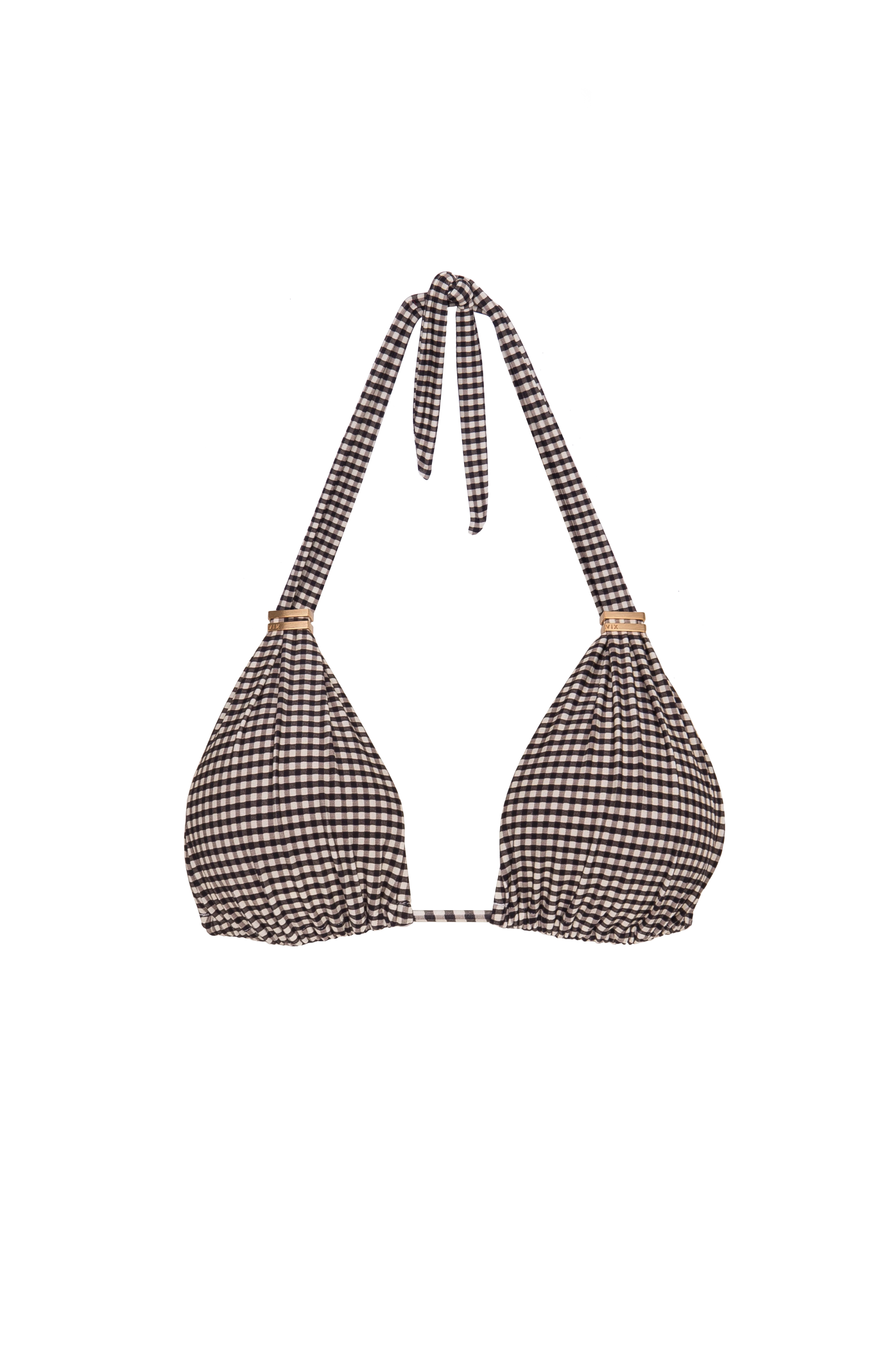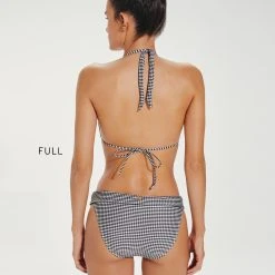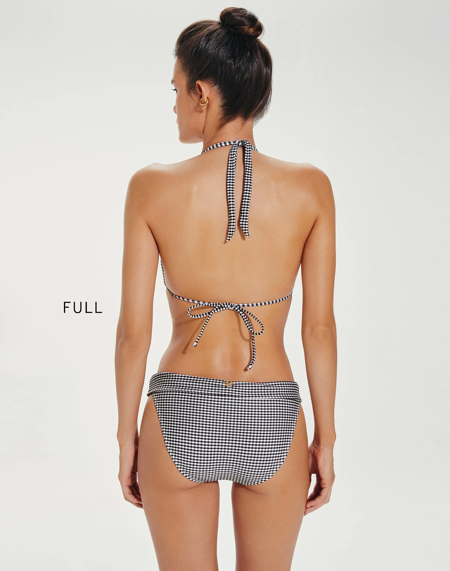 Traditional signature foldover bikini bottom in a handmade watercolor print for added texture and sliding gold hardware for customizable coverage. Ideal for any bodice.