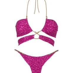 Detailed bottom in a classic cut with dainty artisanal stretchy woven rope-like fabric adorned with 24k gold