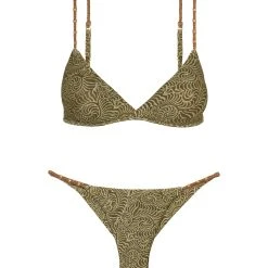 Detailed bottom in a classic cut with dainty artisanal stretchy woven rope-like fabric adorned with 24k gold