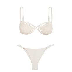 Soak up the sun in a classic bikini with an alluring crochet construction that takes this top to a new style level.