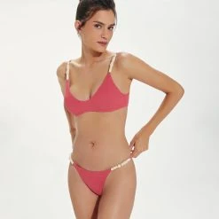 From here to there in contemporary swim bottoms that will have you looking your best in any water activity—designed in our exclusive opaque crepe fabric for added texture with hand-embellished resin beading straps that fit just right.