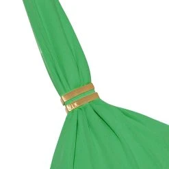 Slide the 24k dipped gold tubes to your liking and adjust the ties to the back of the neck to get the perfect form-flattering fit. Style with matching bottom, cover up, and straw bag for a perfect pool day look.