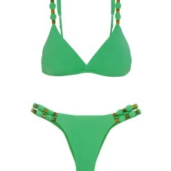 Modish bikini bottom combines elegance with artisanal detailing for lavish wear. Its sophisticated side straps are carefully hand-made with fabric oval beading and tortoiseshell accents. The perfect statement bottom brings a fresh sophisticated style into your swim rotation this season.