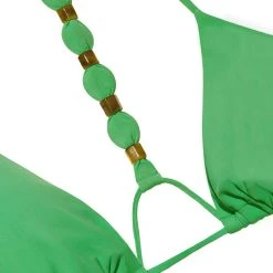 Stand out, be seen, and enjoy the view in the revamped version of the iconic bead tri. Designed with hand-crafted fabric oval appliqués and tortoiseshell resin accents on the straps the Dora Tri makes the ideal top for a fashionable day in the sun.