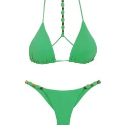 Stand out, be seen, and enjoy the view in the revamped version of the iconic bead tri. Designed with hand-crafted fabric oval appliqués and tortoiseshell resin accents on the straps the Dora Tri makes the ideal top for a fashionable day in the sun.