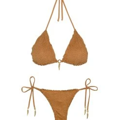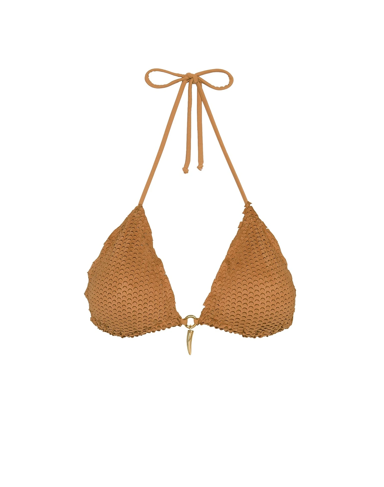 Make waves in this luscious triangle top; sleek exclusive laser-cut fabric with a suede-like feel adds an element of luxury and plenty of compliments.