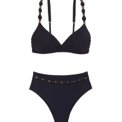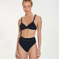 Bring on the waves in this retro-inspired high-waisted bottom fit for lounging around the pool or hitting the beach in style. The Dora Hot Pant is shaped in our exclusive Brasilian lycra, a fixed hand-crafted belt made from oval fabric appliqués and tortoiseshell resin accents that add a layer of sophistication to your swimwear.