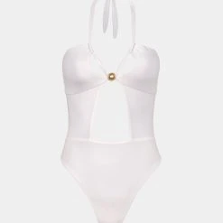 Get back to the good life in this glamorous little number made to flaunt your sophisticated style. The Brenda combines luxury with a minimalistic aesthetic shaped in famous lycra, with a sultry keyhole neckline embellished with a 24k gold bead placed at the center of this piece, creating the focal point of the silhouette.