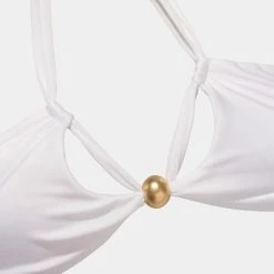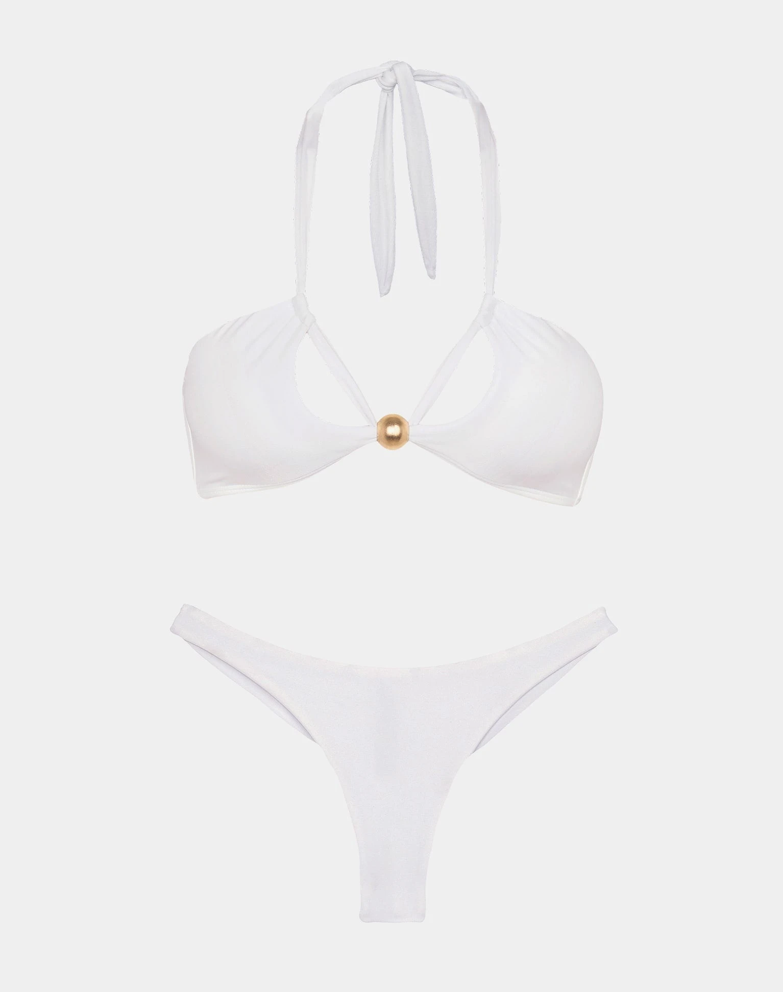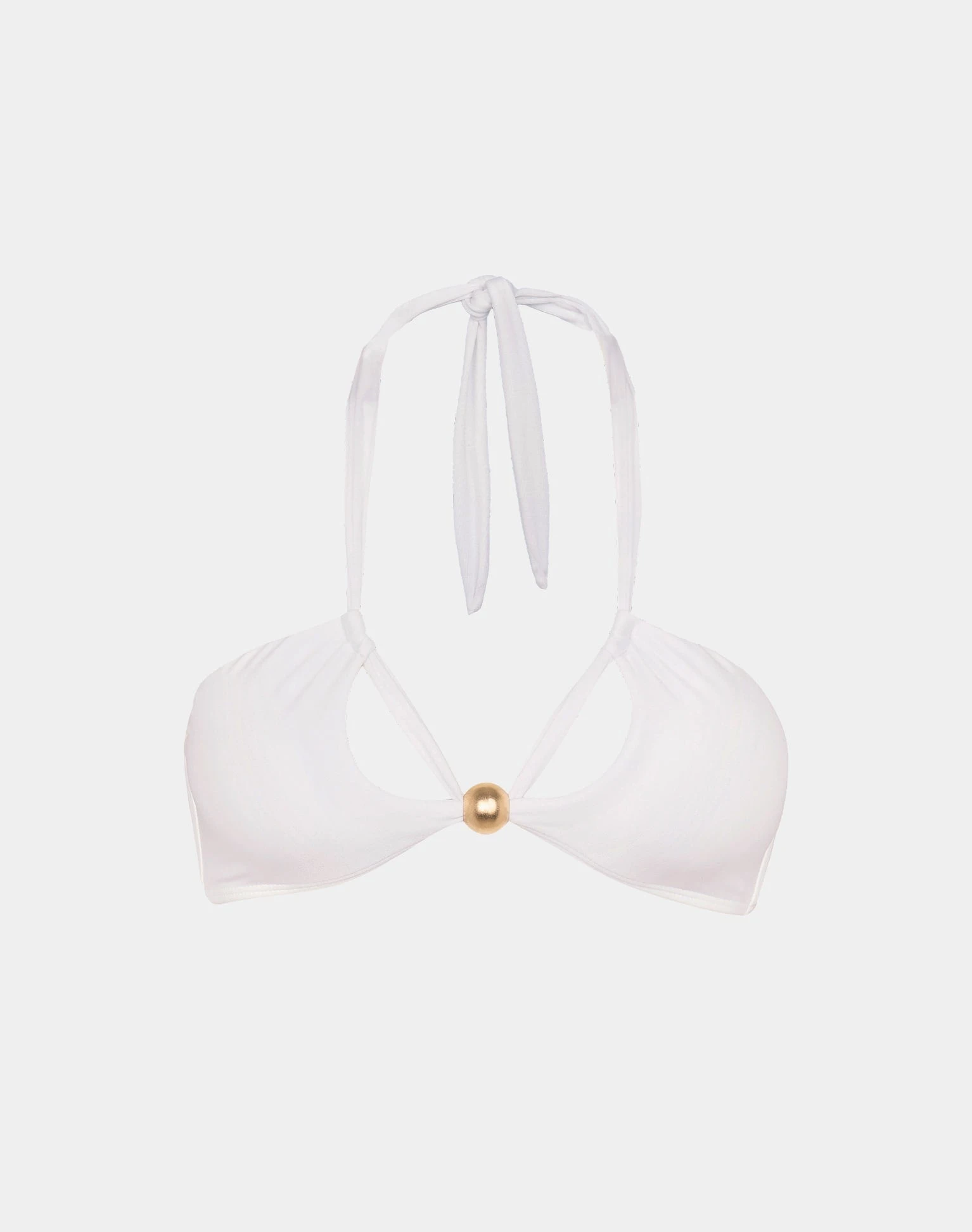 Show up at the pool in sensual glamour with the Brenda Top – shaped in our exclusive Brasilian lycra with lush neckline cutouts and embellished with a 24k gold beading for a flirty eye-catching look.