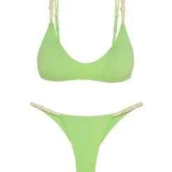 From here to there in contemporary swim bottoms that will have you looking your best in any water activity—designed in our exclusive opaque crepe fabric for added texture with hand-embellished resin beading straps that fit just right.