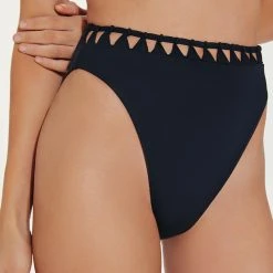 Bring on the sun in this figure-flattering high-waisted bottom that will have you catching waves in style—crafted in our exclusive Brasilian lycra with geometric cut-outs and a macramé trim detail that take this bottom to new heights giving you a sophisticated yet trendy look.