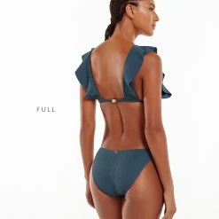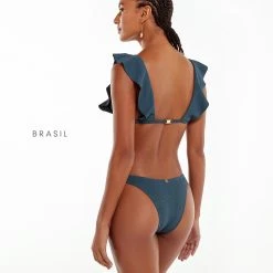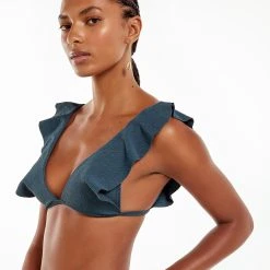 Add some flare into your swimwear with this flirtatious plunging neckline flutter bikini top.