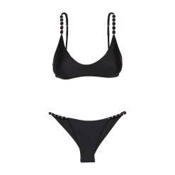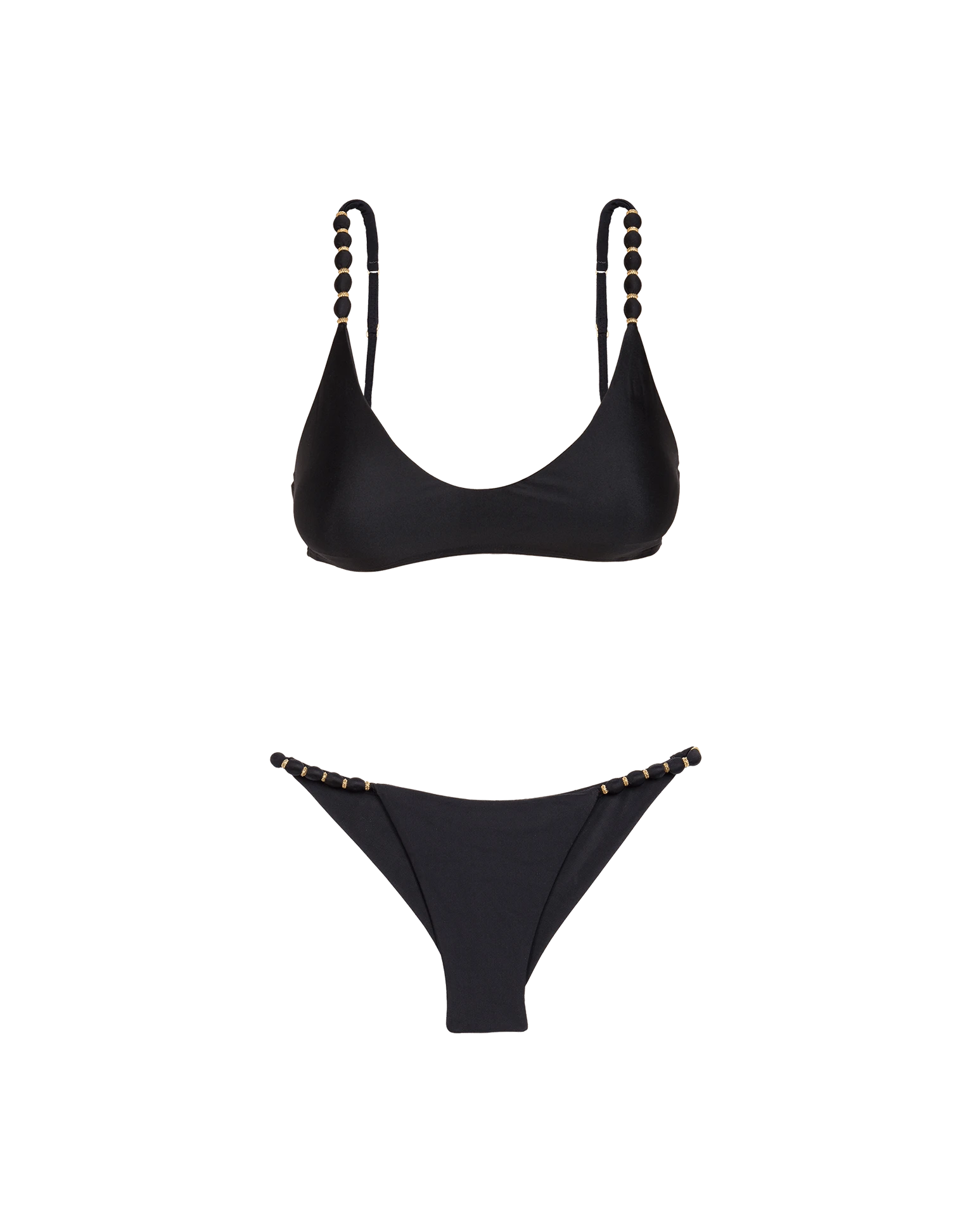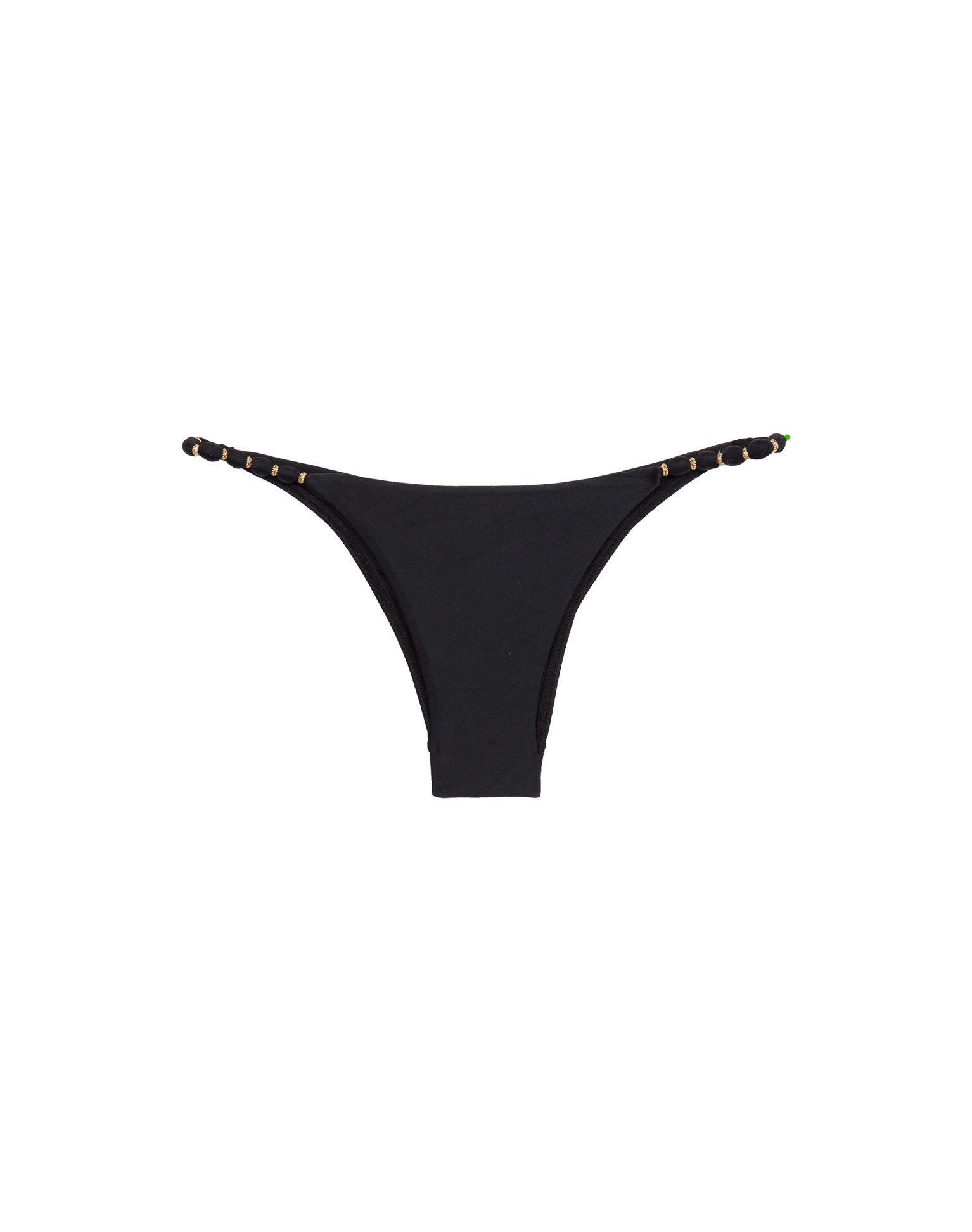 Classic bikini bottom with hand-crafted fabric beading and gold accents.
