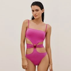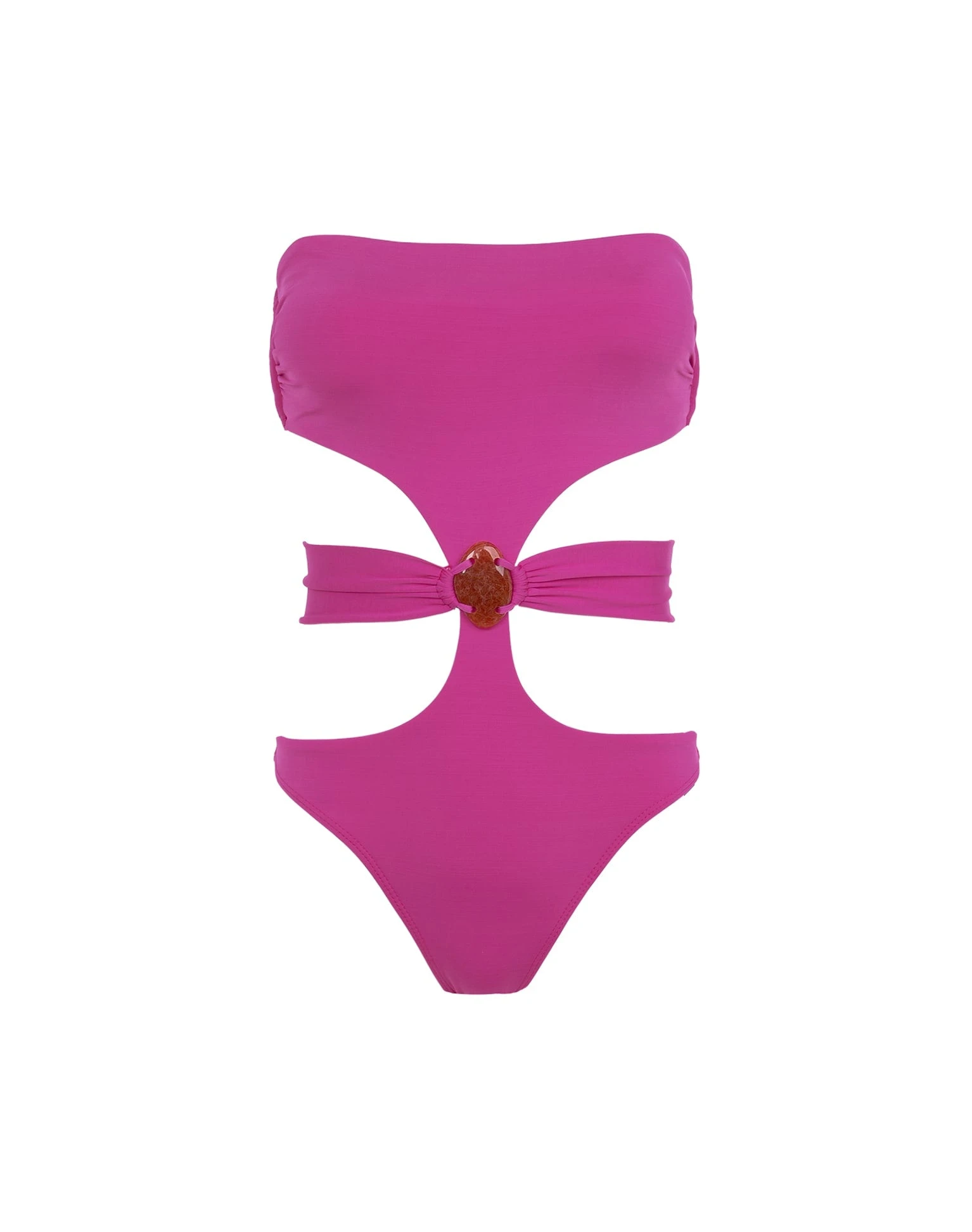 A fiery addition to your swimwear collection, the Kim One Piece will bring out your undeniable fashion sense. Crafted in our beautiful Brazilian lycra, this alluring silhouette was made for you to flaunt your figure with sexy yet sophisticated waist cut-outs and an oversized resin charm that is sure to become a poolside favorite on all your getaways.