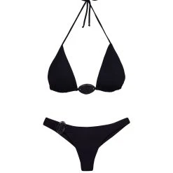 Answer the call of the tropics in luxurious style while wearing the Kim Tri Top, a modern take on a timeless classic. This tri-cut bikini is crafted in our highest quality Brazilian lycra and embellished with an oversized resin charm that will have you glistening in glamour.