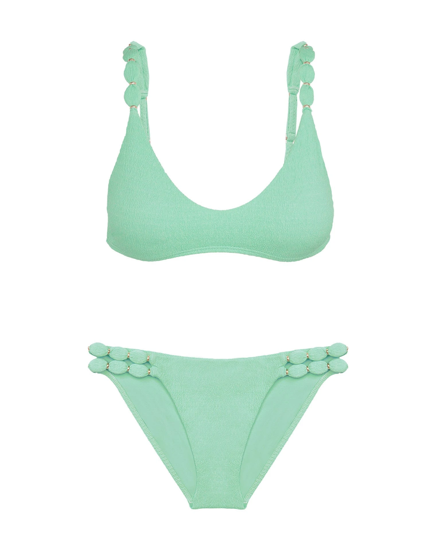Conquer the sandy beaches of your next getaway in ultimate style wearing the Lizzy Li Top, an athletic-inspired bikini top designed to keep you on-trend during your outdoor activities. Fashioned in our specialty crepe texture Firenze fabric and artisanally enhanced trims composed of self-covered oval appliqués and complemented with 24k gold charms which introduce a feminine yet flirty allure to this exceptional design.