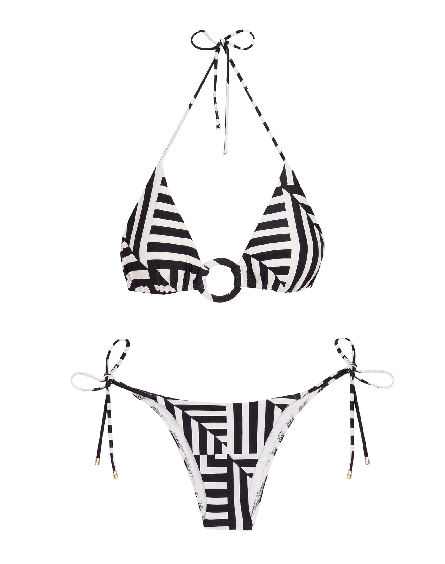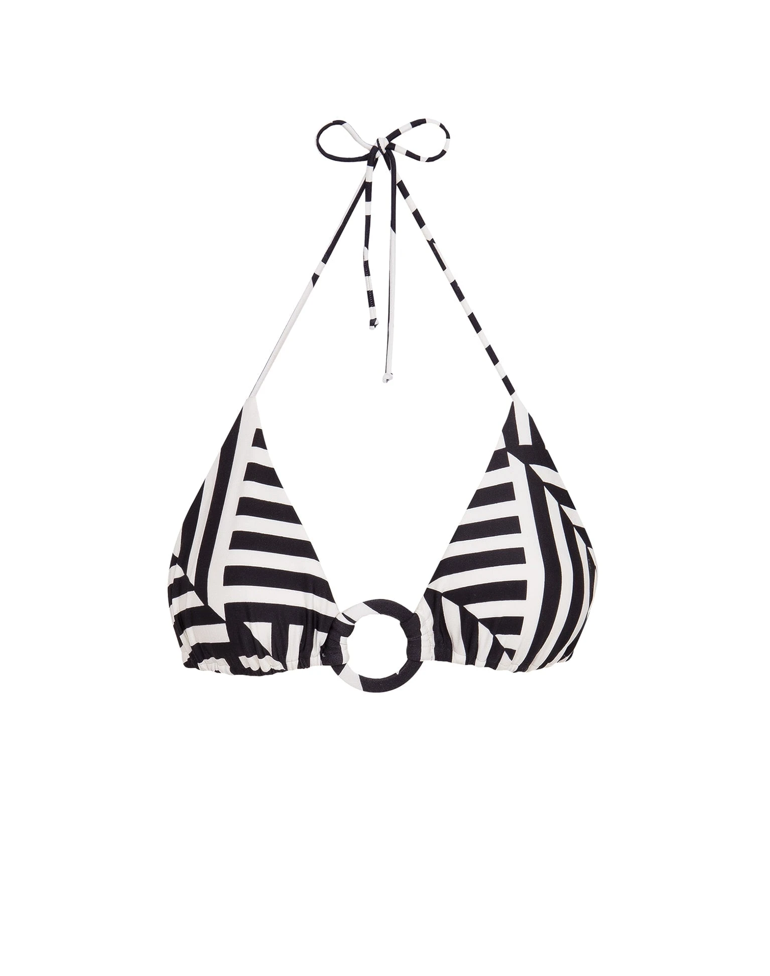 Impress yourself and onlookers in modern fashion by strutting the Tisa Tri Top. Timeless tri-style top featured in our exquisite Brazilian lycra, halterneck ties, and embellished with an oversized self-covered ring on the bust, which gives this piece a coveted allure ideal for all your chic coastal adventures.