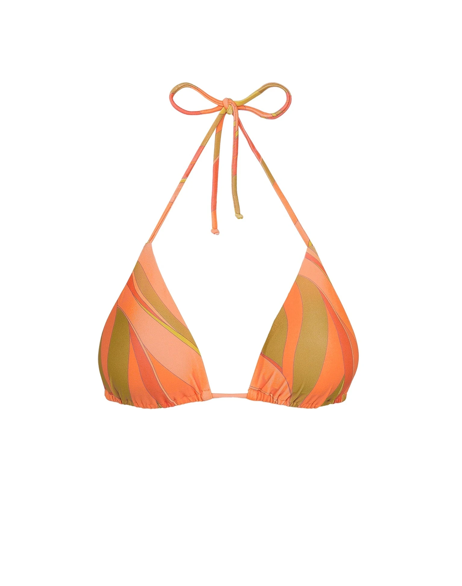 When the beach is calling, enlist the classic Tri Top to answer its call. This stunning traditional triangle design is shaped in our exclusive Brazilian lycra and features an adjustable top, 24k gold end caps at ties, and a smooth figure-flattering fit making this piece your ally for a classic swim style.